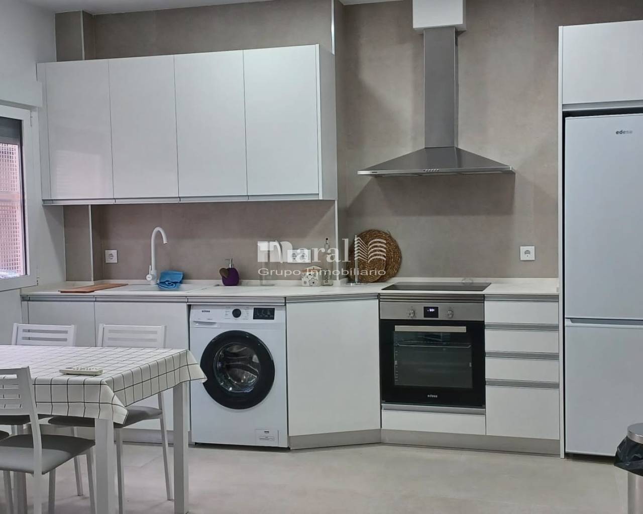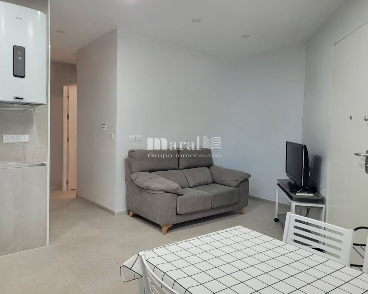 Distribuida en: Salón-comedor con cocina integrada, cuarto de baño completo y dos habitaciones.